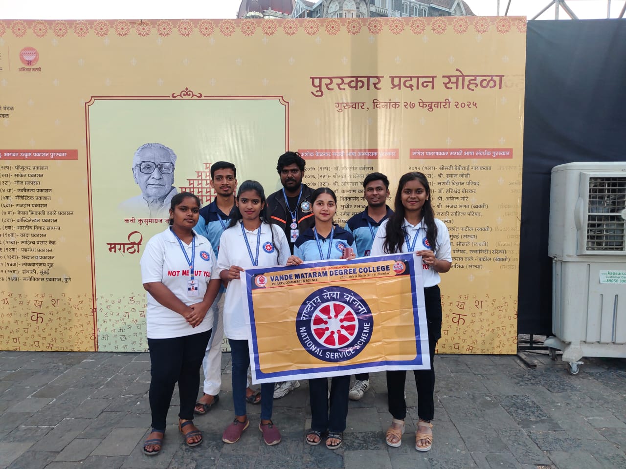 मराठी भाषा गौरव दिन, जो की सुप्रसिद्ध मराठी कवी आणि लेखक कुसुमाग्रज (वि. व. शिरवाडकर) यांच्या जन्मदिनी साजरा केला जातो, यावर्षी २७ फेब्रुवारी २०२५ रोजी गेटवे ऑफ इंडिया येथे महाराष्ट्र शासन व मुंबई विद्यापीठाच्या राष्ट्रीय सेवा योजनेच्या संयुक्त विद्यमाने आयोजित करण्यात आला.