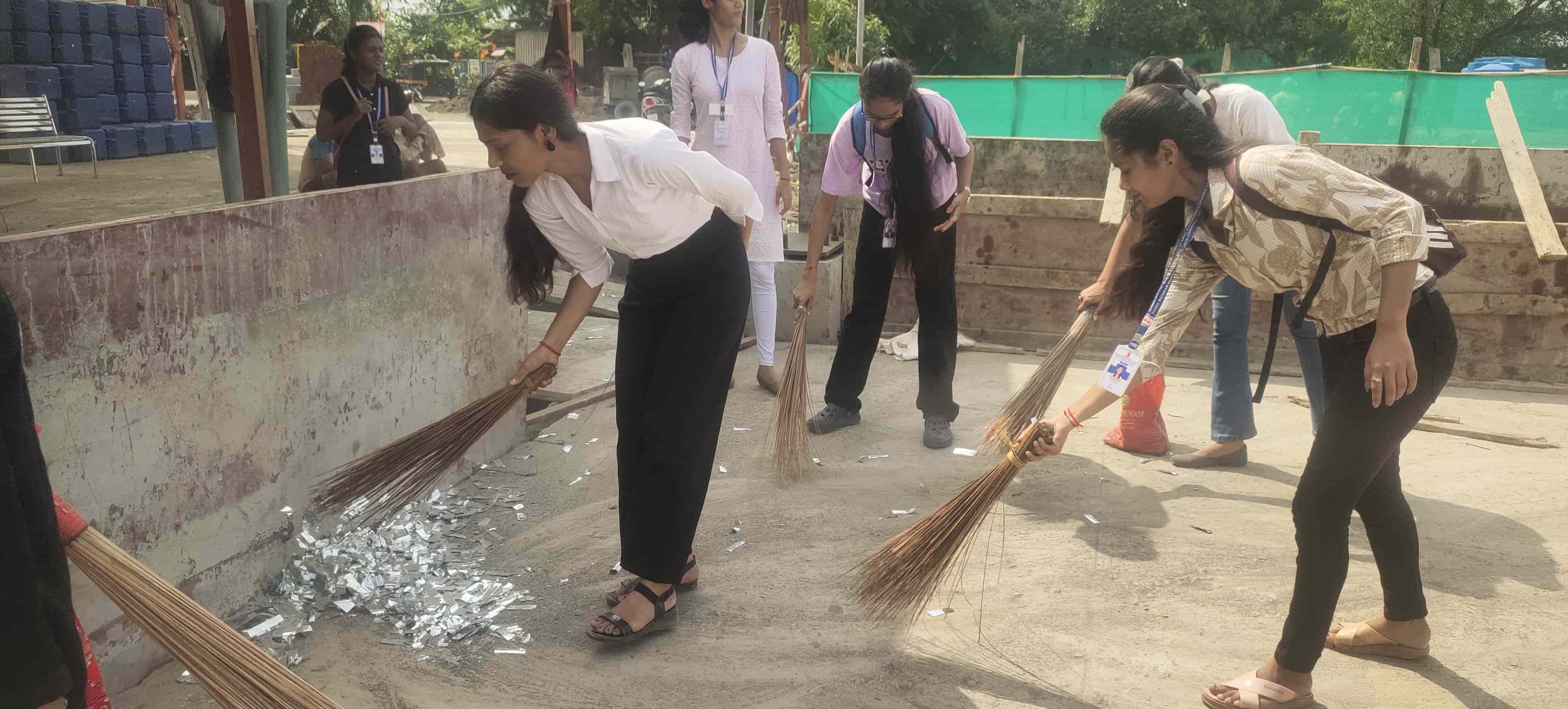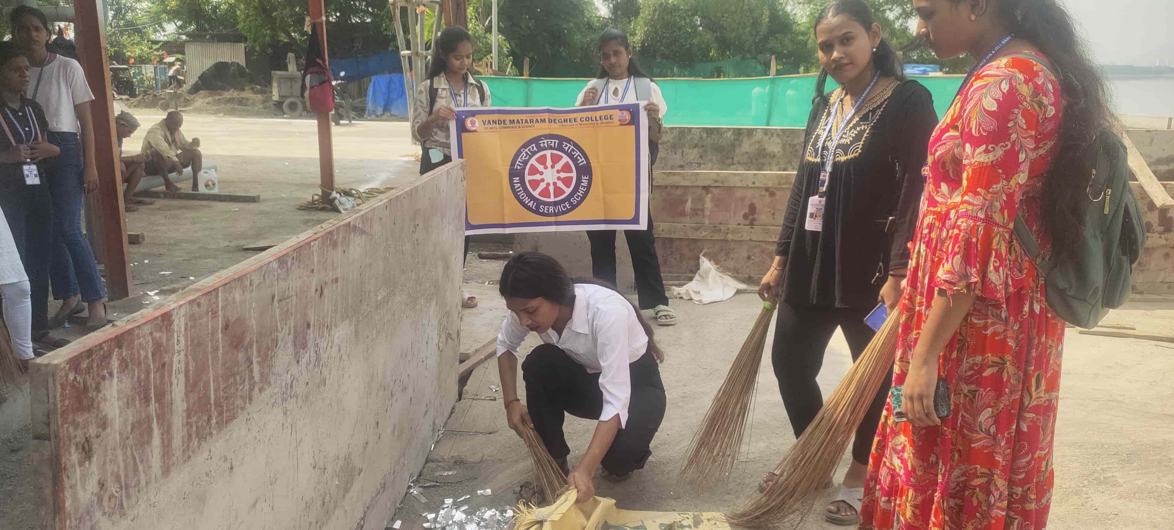 On the auspicious occasion of Anant Chaturthi, the NSS Unit of Vande Mataram Degree College, Dombivli (W) conducted a Khadi Clean Drive on 18th September 2024 at Ganesh Khadi, a popular immersion spot in Dombivli (W).