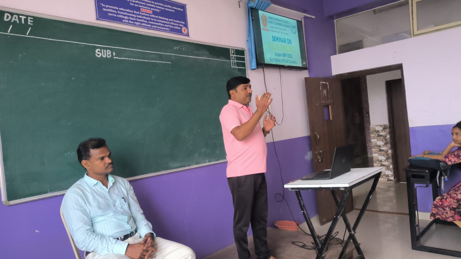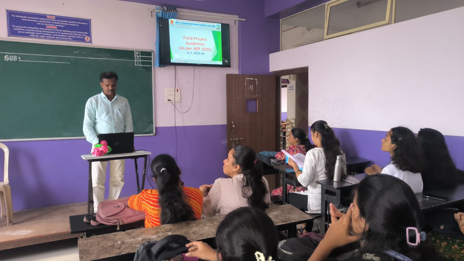 This initiative was taken in alignment with the National Education Policy (NEP) 2020, under which the Field Project is a compulsory component for all Second Year (S.Y.) students. The event was aimed at guiding SYBA and SYBCOM students on the objectives, structure, and execution of the Field Project, and to prepare them for active participation in this important academic endeavor.