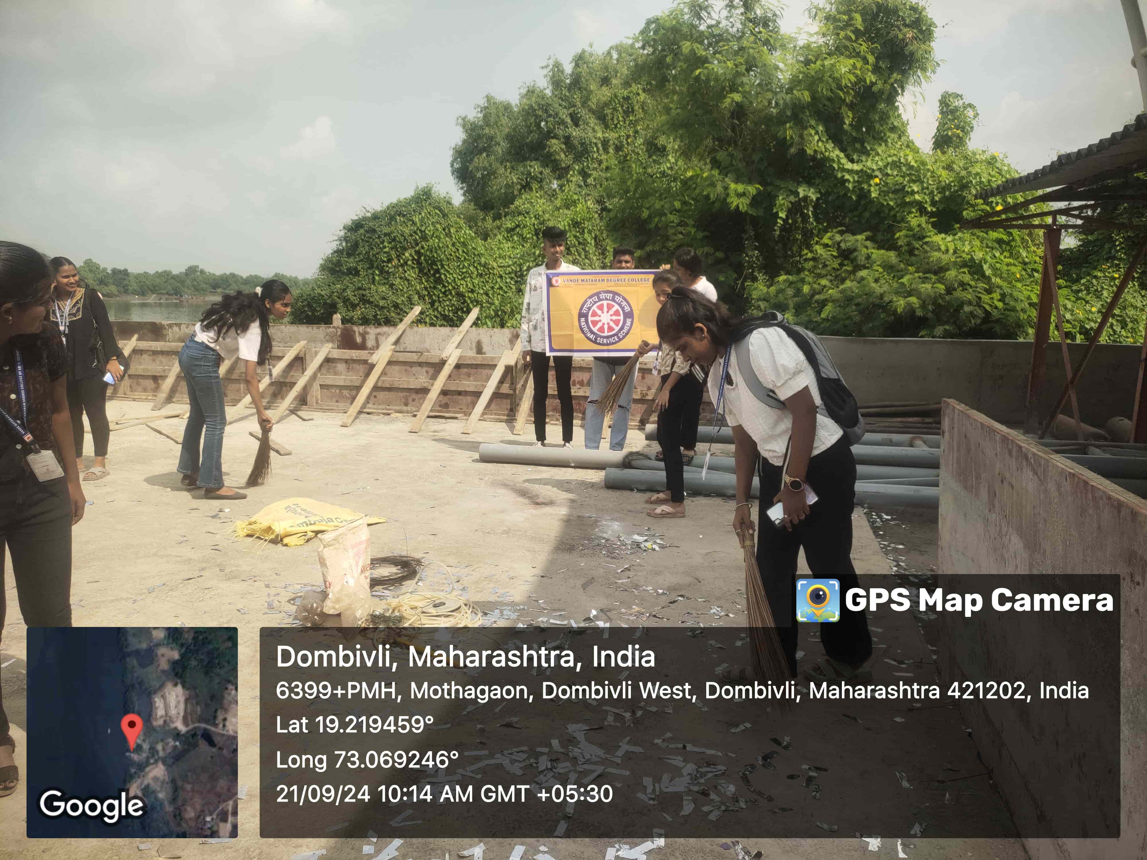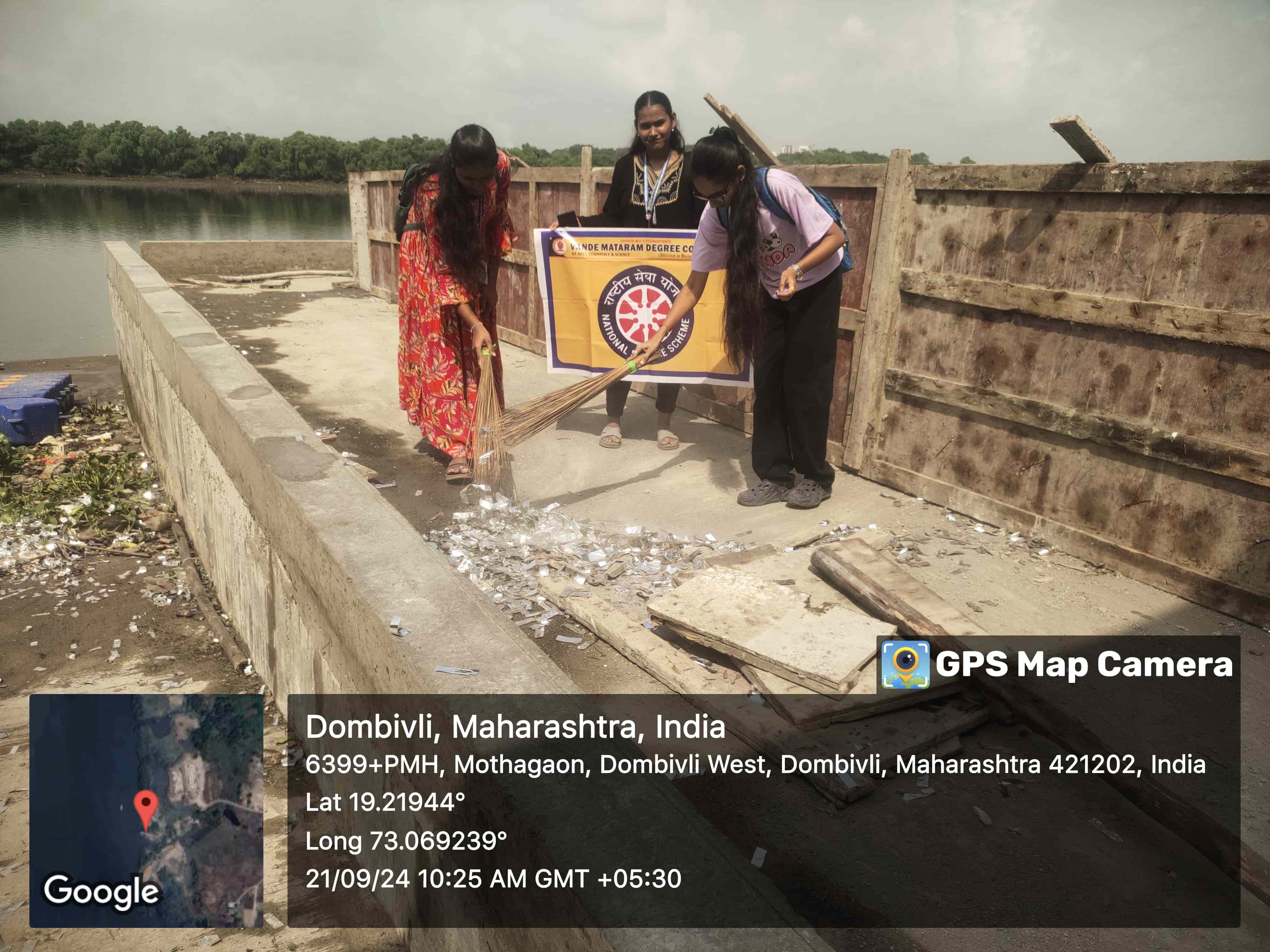 On the auspicious occasion of Anant Chaturthi, the NSS Unit of Vande Mataram Degree College, Dombivli (W) conducted a Khadi Clean Drive on 18th September 2024 at Ganesh Khadi, a popular immersion spot in Dombivli (W).