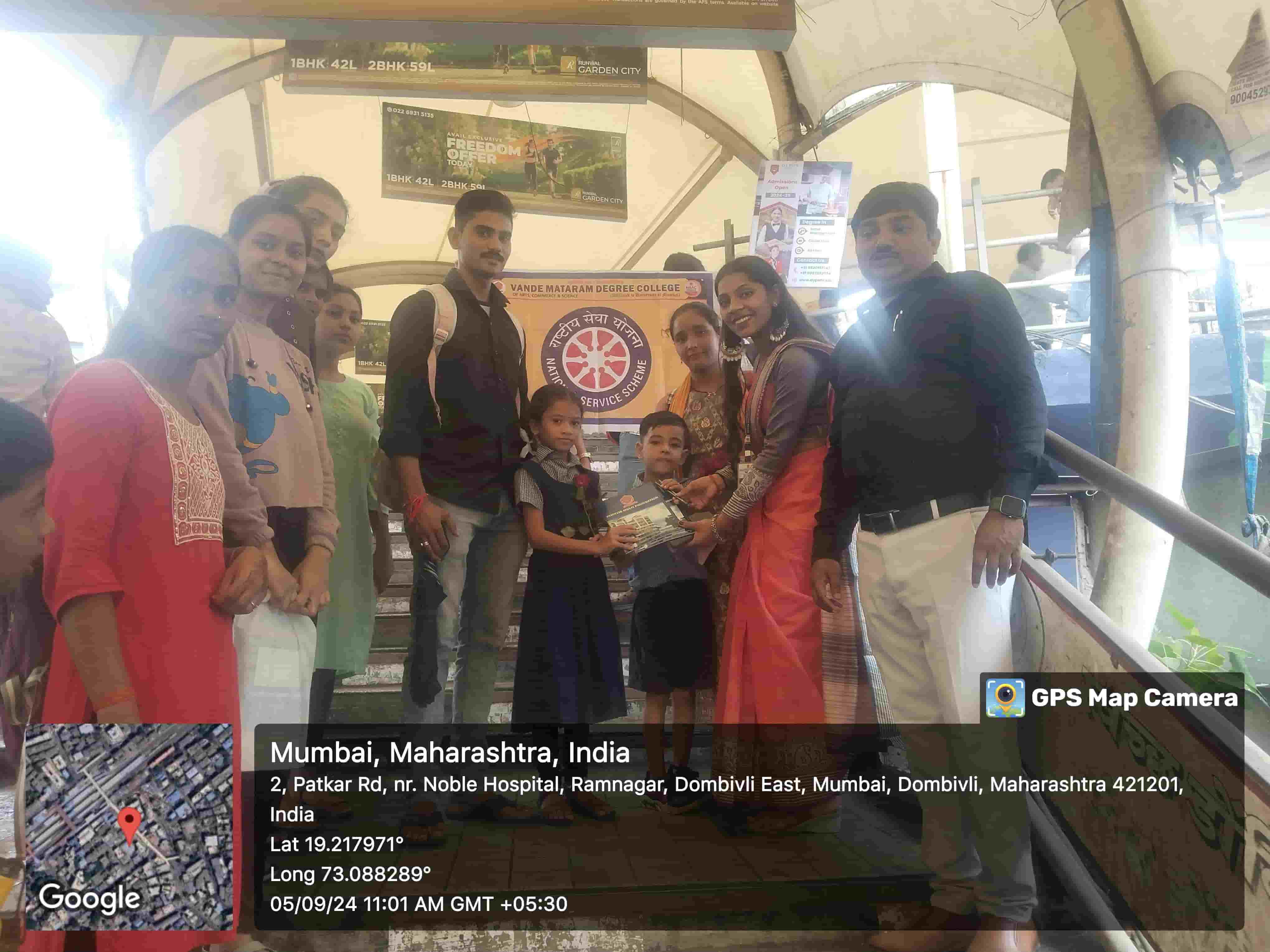 On the special occasion of Teacher’s Day, celebrated annually on 5th September in memory of Dr. Sarvepalli Radhakrishnan, the NSS Unit of Vande Mataram Degree College, Dombivli (W) organized an Educational Material Distribution Activity to promote the value of education and support children in need.